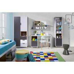 Biurko z kolekcji JOY to nowoczesny kącik do nauki. Model wyróżnia obszerny blat, podręczne szuflady oraz praktyczny schowek na szybkie odłożenie podręcznych rzeczy. Doskonałej jakości pomocnik do nauki, posłuży do przechowywania przyborów szkolnych i ułatwi utrzymanie porządku na blacie.