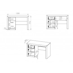 Klasyczne biurko z szufladą i półkami na książki do pokoju młodzieżowego lub gabinetu.