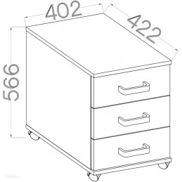 Kontenerek biurowy Malta posiada trzy praktyczne szuflady o wymiarach 8,6x32,4x33,7 cm (wys. x szer. gł.) Mobilny konterenerek to idealne uzupełnienie dla Biurka Malta.