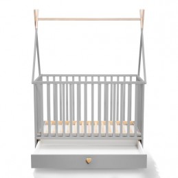 Cała rama wykonana jest z naturalnego drewna bukowego, podkreślonego ciepłymi odcieniami bieli i szarości. Szuflada w dolnej części łóżeczka oferuje wystarczająco dużo miejsca do przechowywania pościeli, ubranek, zabawek, poduszek czy akcesoriów Twojego dziecka.