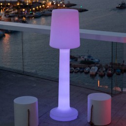 Carmen 165 ogrodowa lampa od New Garden.New Garden to hiszpańska marka specjalizująca się w wyjątkowych meblach i oświetleniu wykonanym z polietylenu,dzięki czemu są lekkie i odporne na ekstremalne temperatury i promienie UV.Dzięki klasie szczelności IP 54 może być z powodzeniem używana w ogrodzie, na tarasie czy balkonie.Lampa posiada podświetlenie LED w konfiguracji kolorystycznej RGB, które sterowane jest pilotem.