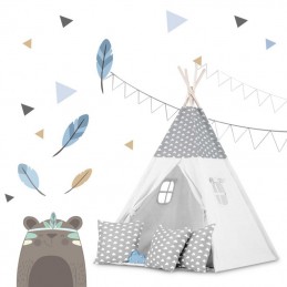 Aby zabawa była jeszcze przyjemniejsza do tipi dołączamy poduszki i matę izolującą z antypoślizgowymi wypustkami.