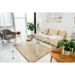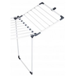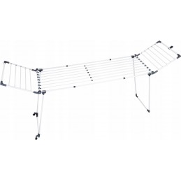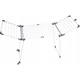 Suszarka pozioma, stojąca, rozsuwana + rokładane skrzydła, które umożliwiają suszenie większej ilości ubrań. Teleskopowy środek + rozkładane skrzydła (składane do środka). Środkowe skrzydła wysuwasz tylko wówczas gdy jest potrzeba. Dzięki grubym prętom zapobiega powstawaniu zagnieceń na częściach garderoby jednocześnie skracając proces prasowania.