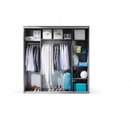 Wielka szafa z przesuwnymi drzwiami Zonda. Drzwi są przesuwne osadzone na rolkach. Jest to bardzo pakowny mebel. Wewnątrz znajdują się półki oraz dwie wnęki na wieszaki.