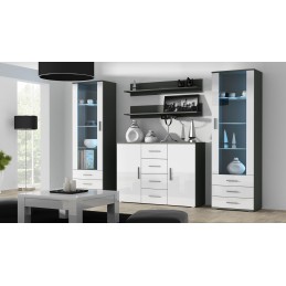 Korpus: płyta meblowa laminowana matowa Front: płyta MDF laminowana na wysoki połysk Uchwyty: tworzywo sztuczne |